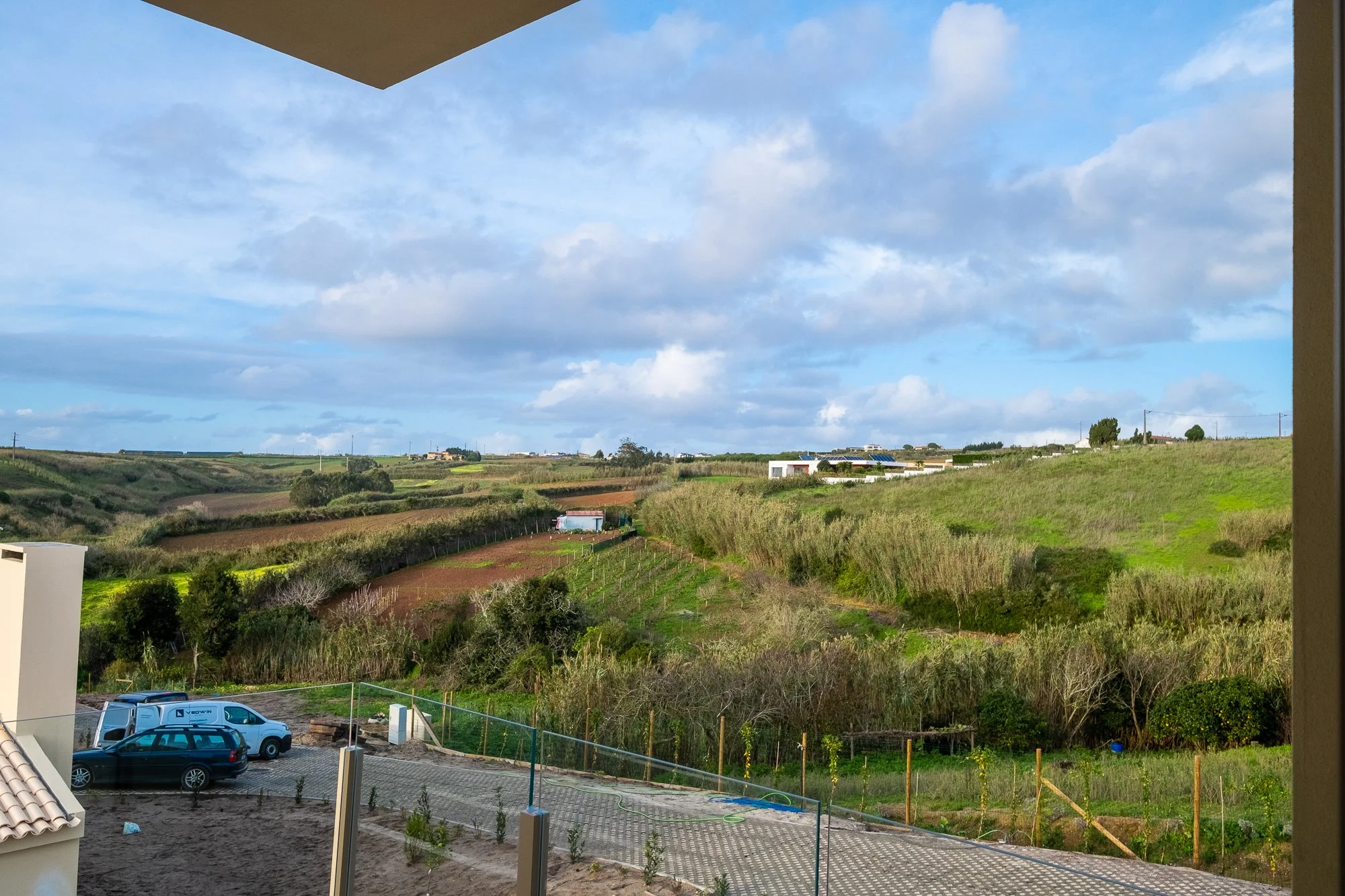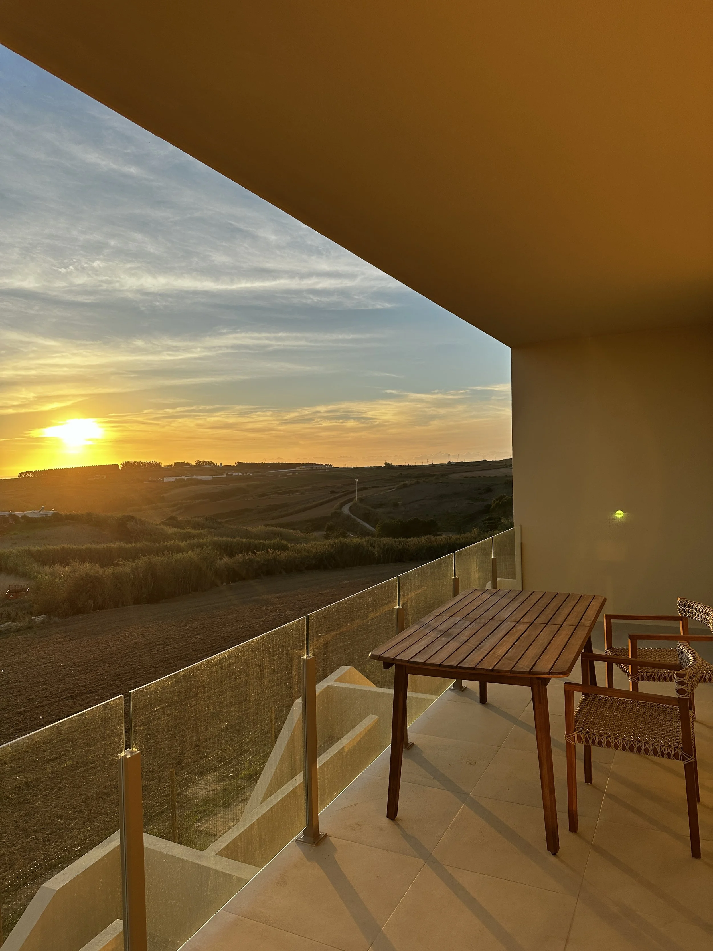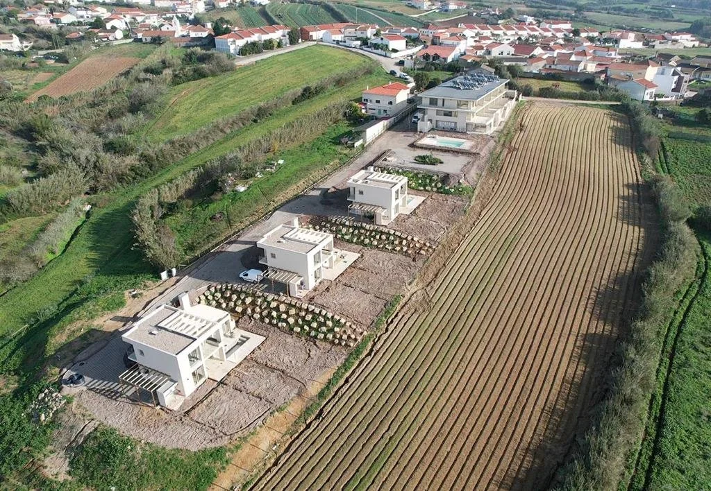These private residences overlook the rolling hills and farmland of the Lourinhã region, looking out towards the sea in the near distance.